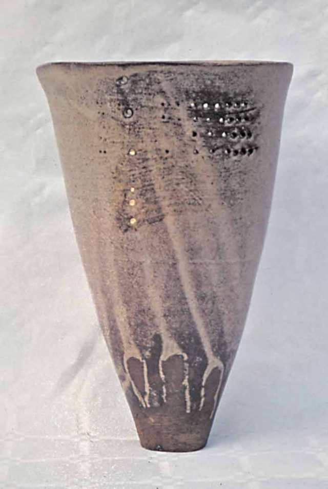 Urnenvase mit Ascheglasur und Goldauflage
